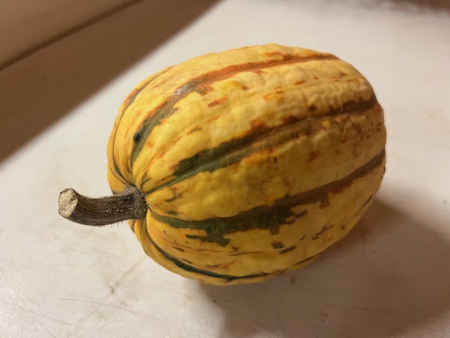 - Nettoyer la courge, la couper dans la longueur et retirer les graines.