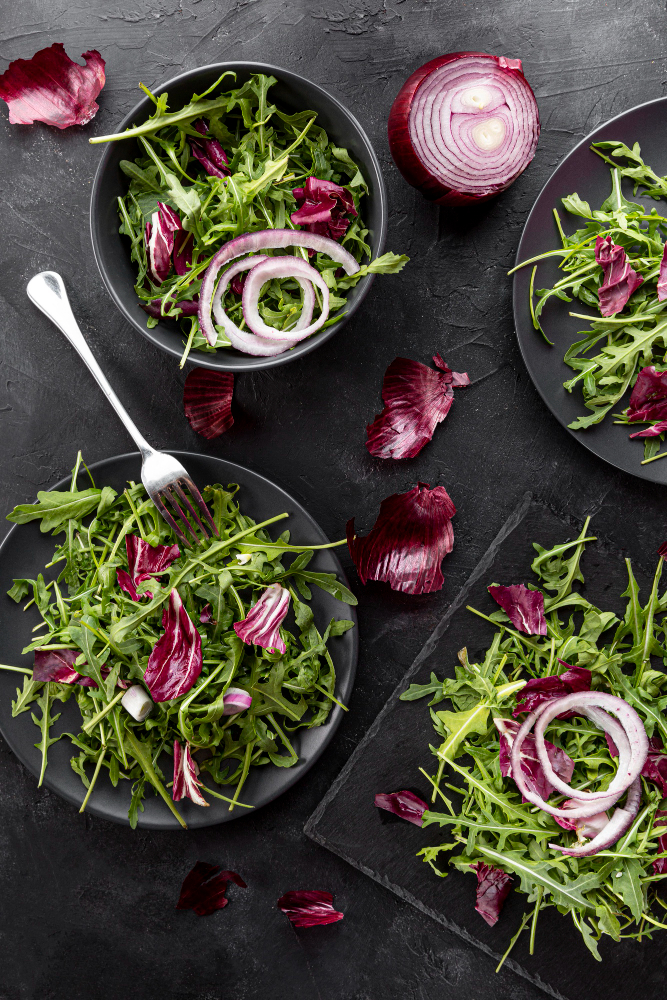 Astuces pour atténuer l’amertume de la chicorée rubro : Coupez-la en deux et émincez-la. Cela permet d’avoir un mélange de toutes les feuilles, le coeur étant moins amer.